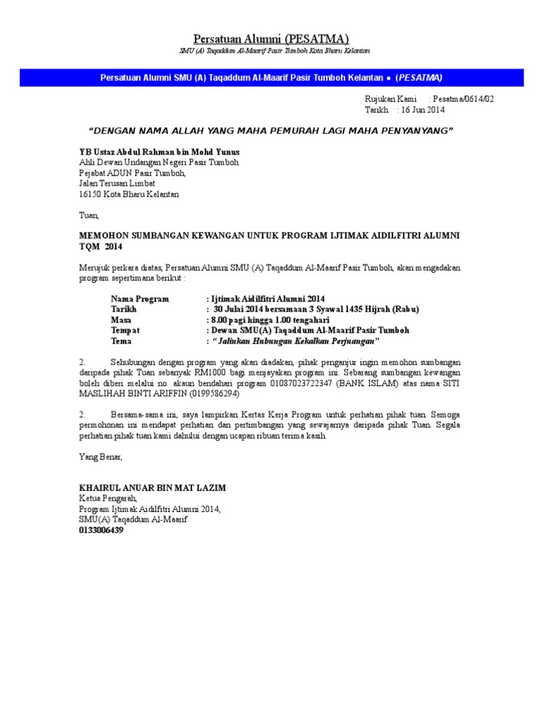 Surat Mohon Sumbangan Kewangan Lihat Letter Website